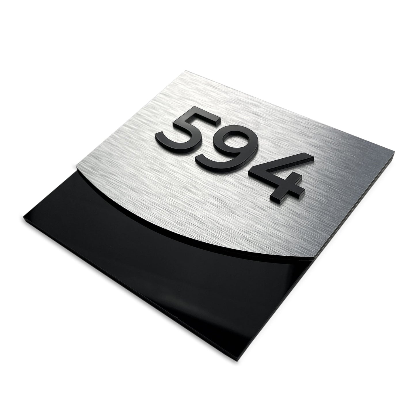 - Konstruksjon: Dørskiltet vårt har en sofistikert design som består av to lag av høy kvalitet. Det nederste laget er laget av en slitesterk sølvfarget aluminiumskompositt som gir både styrke og et elegant utseende. Det øverste laget er laget av elegant svart akrylglass, noe som gir et moderne og raffinert uttrykk.
