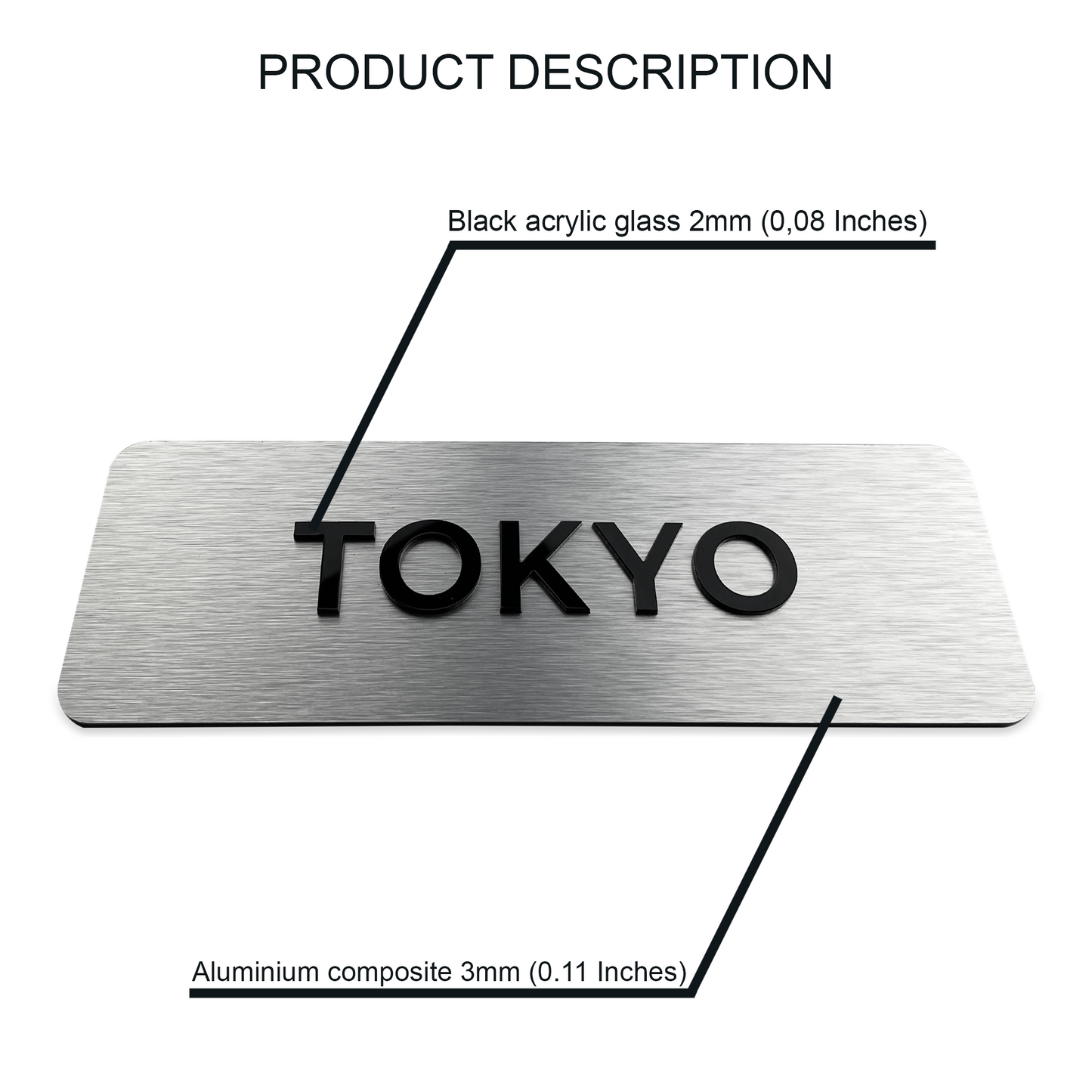 - Material: Aluminium composite, With acrylic glass letters